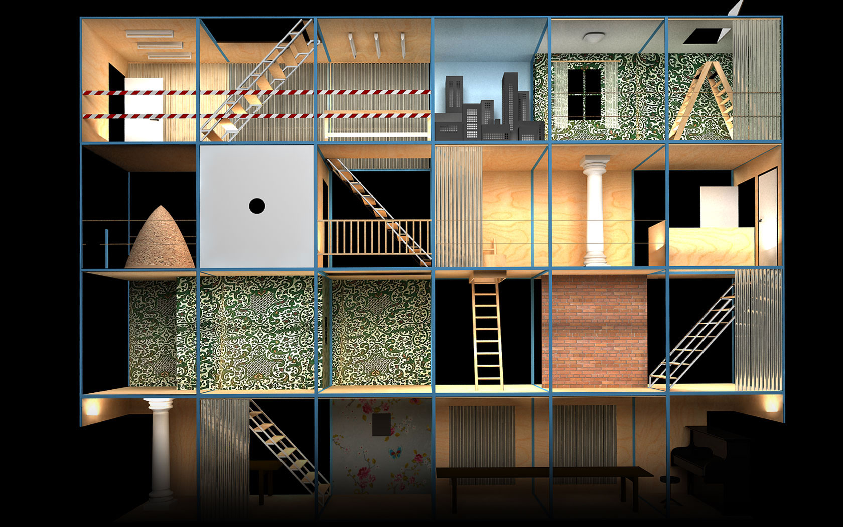 Theatervormgever Theun Mosk ontworp voor toneelgezelschap de Veenfabriek het decor voor het stuk 'Drie gezusters'. Renderboys gaf ondersteuning tijdens het ontwerpproces in 3d modellen en visualisaties.