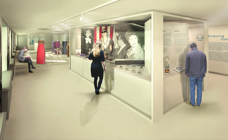 Grace Kelly tentoonstelling in Paleis 't Loo, Ontworpen door Tatyana van Walsum, assistent vormgeving: Peter Schermer grafisch ontwerp: Wendela van der Hoeven
