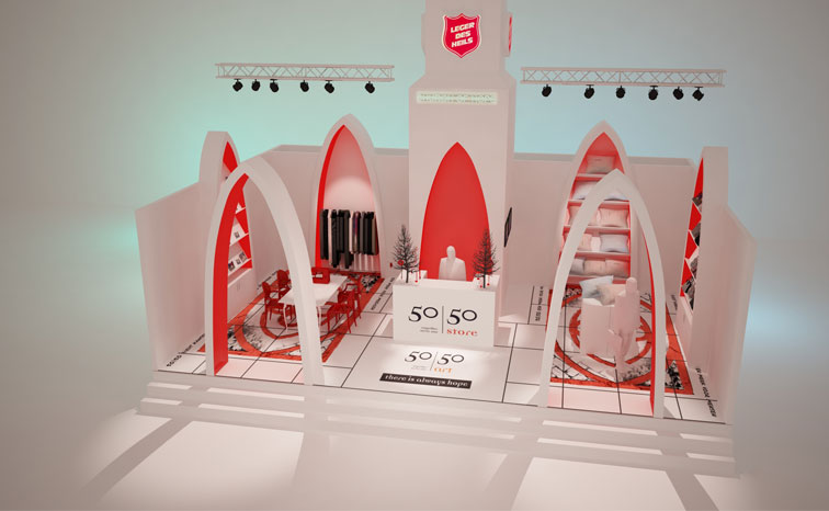 Renderboys ondersteunde Reineke Antvelink tijdens haar ontwerp proces van de beursstand voor 'Leger Des Heils'. Op basis van schetsen maakte Renderboys het 3dmodel en visualisaties.